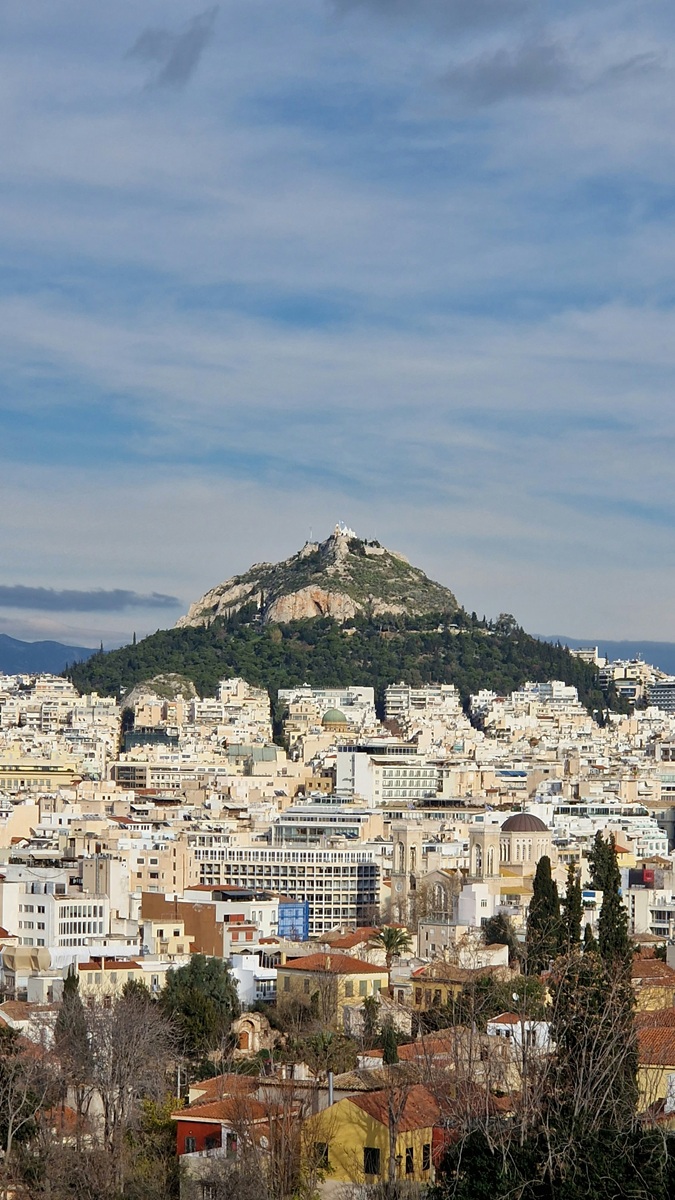 C’est le Mont Lycabette, le point culminant d’Athènes, trônant fièrement à 277 mètres d’altitude.