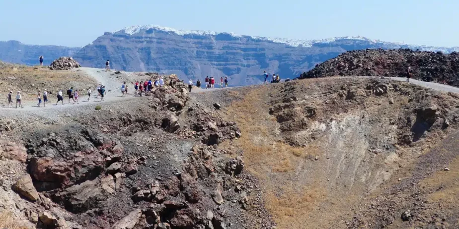 Profitez d’une croisière vers le volcan de Santorin : randonnée sur le cratère, eaux thermales et escale à Thirassía (Option coucher de soleil à Oia disponible).