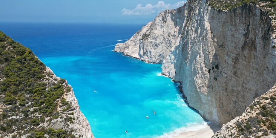 Le point d’orgue terrestre vous attend au sommet des falaises pour contempler la célèbre plage de Navagio (Shipwreck). Ensuite, direction le port d’Anafonitria pour embarquer. Sur l’eau, vous approcherez l’épave du Panagiotis, explorerez les Grottes Bleues, la grotte du Cœur et celle de Maravelia. Vous profiterez d’une escale prolongée sur la Plage Blanche (White Beach) et de passages par les criques de Sfogio. La journée se termine dans l’authenticité des montagnes à Exo Hora, pour saluer le plus vieil olivier de l’île.