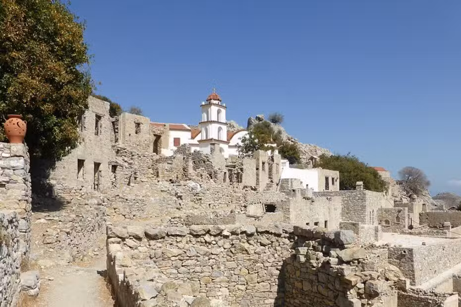 Capitale de l’île, ce village bâti au pied d’une colline présente une architecture traditionnelle typique du Dodécanèse avec ses ruelles étroites et ses maisons blanchies à la chaux. Au sommet se dressent les ruines du château médiéval des chevaliers de Saint-Jean.