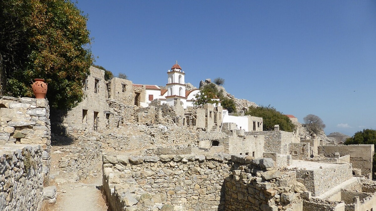 Mikro Chorio (« le petit village ») comptait 750 habitants avant la Seconde Guerre mondiale. Après le conflit, ses résidents ont migré vers Livadia ou émigré aux États-Unis et en Australie, emportant avec eux portes, fenêtres et tuiles. Aujourd’hui, il reste 220 maisons en ruines sans toit, envahies par la végétation, avec au centre une église restaurée.